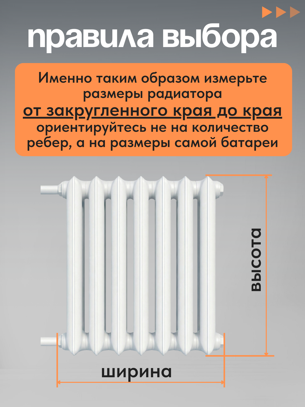 • перед покупкой рекомендуем замереть батарею от закругленного края до края и ориентироваться не на ребра, а на размер самой батареи;